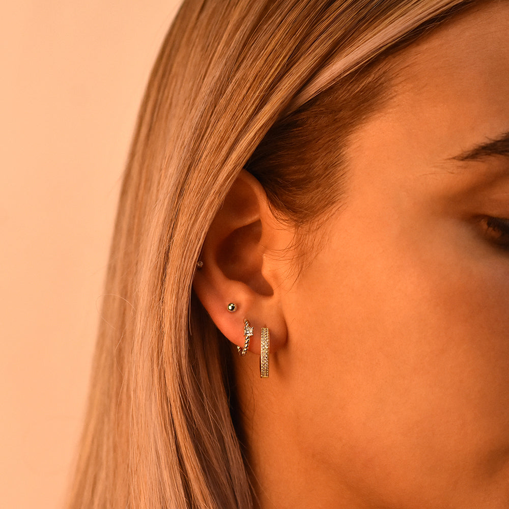 Meet the go-to stack of your dreams with Em + Liv's Rhea Huggies Set, featuring the perfect mix of cute huggies and studs. Each piece in this set is unspeakably versatile, so wear it out while walking the beach or dancing the night away. Add a cute midi dress and drop earrings to achieve the look you desire.