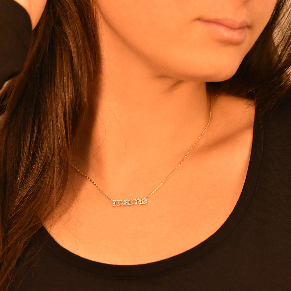 Make mom's jaw drop with Em + Liv's CZ Mama Necklace, featuring a dainty 14K gold plated chain. Pair this with a couple of dainty chains for an unforgettable gift to Mom.