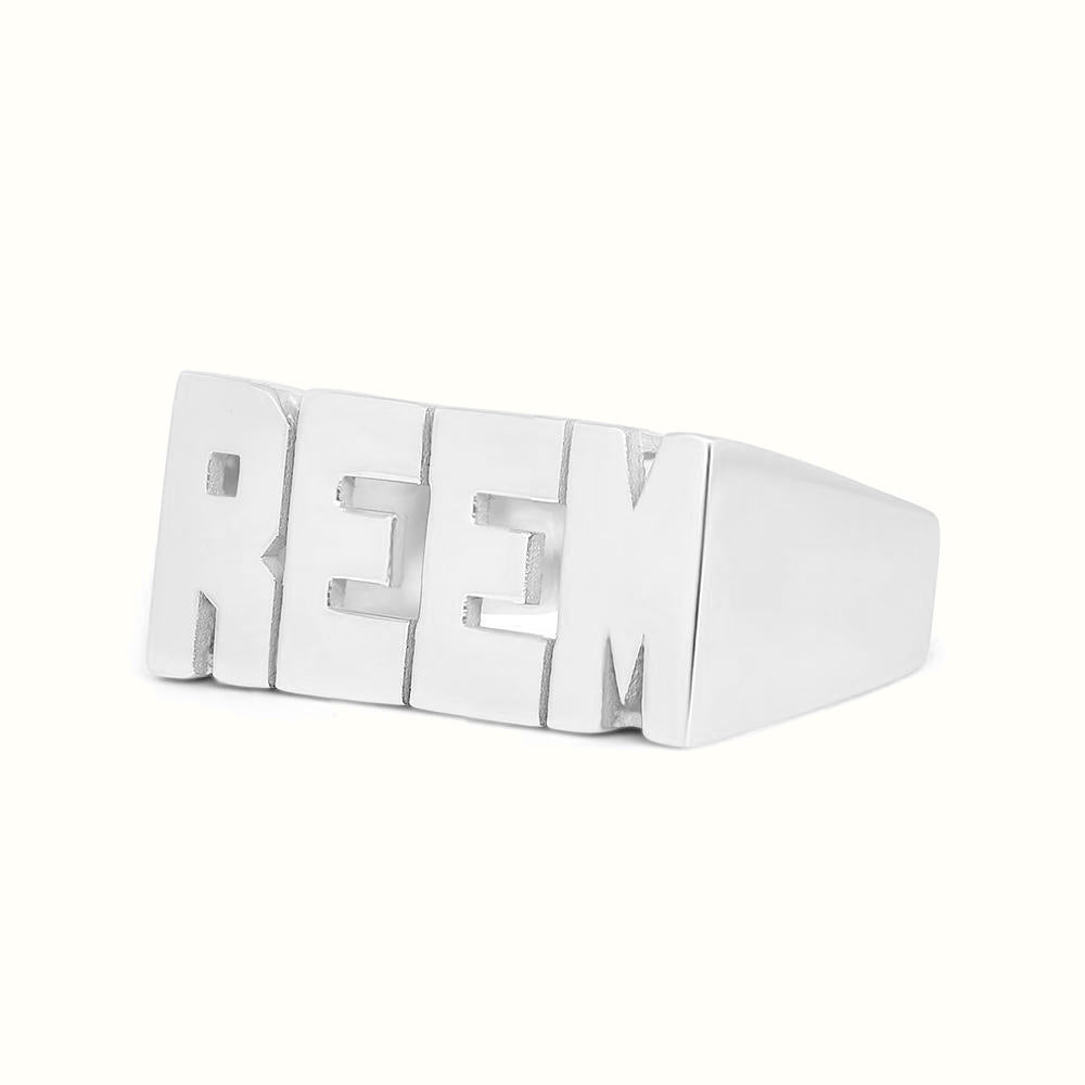 The Block Name Ring is available in multiple types of metals and sizes. Be sure to choose your desired style!