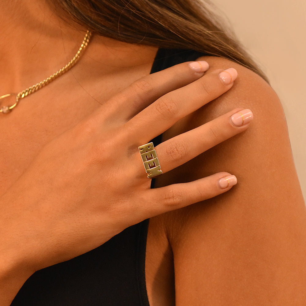If you are looking for a way to customize your look, The Block Name Ring is the way to go! All you have to do is put your desired name in the custom field!