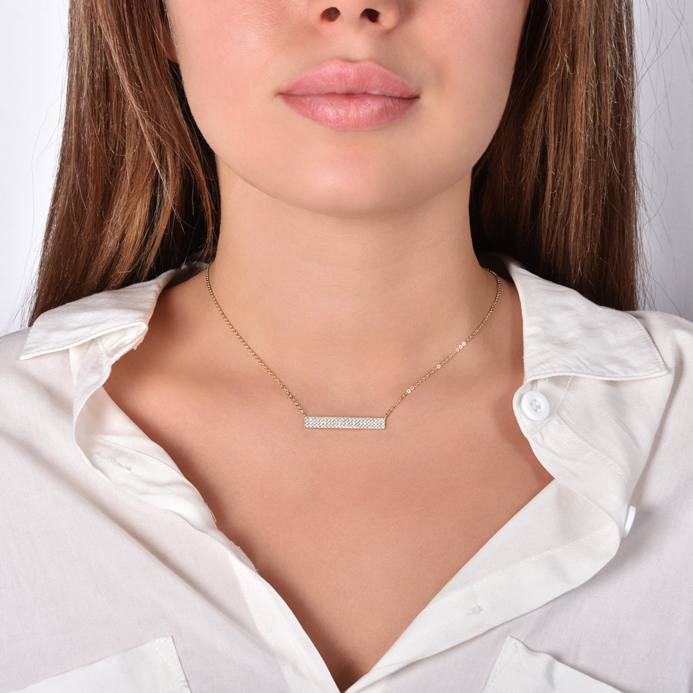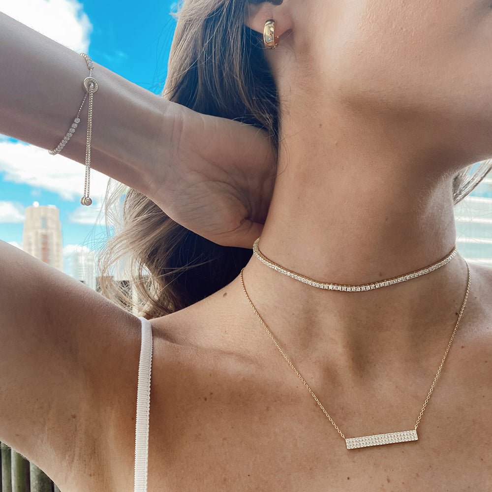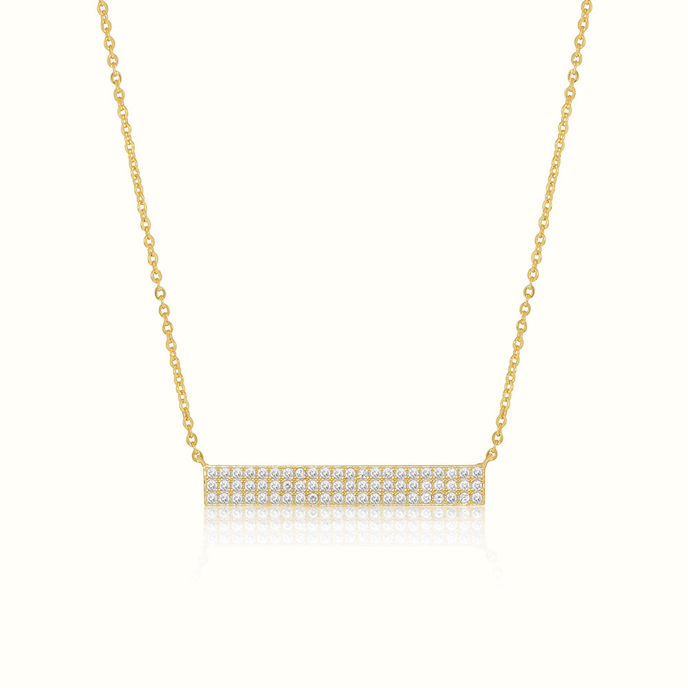 Spice up your look with our iced out 14K Gold Plated bar Necklace. You can layer The Belle Necklace with whatever your heart desires. Some great options can be our bestselling GP Paperclip chains, or our Herringbone chains. Always remember to shine in whatever you don!