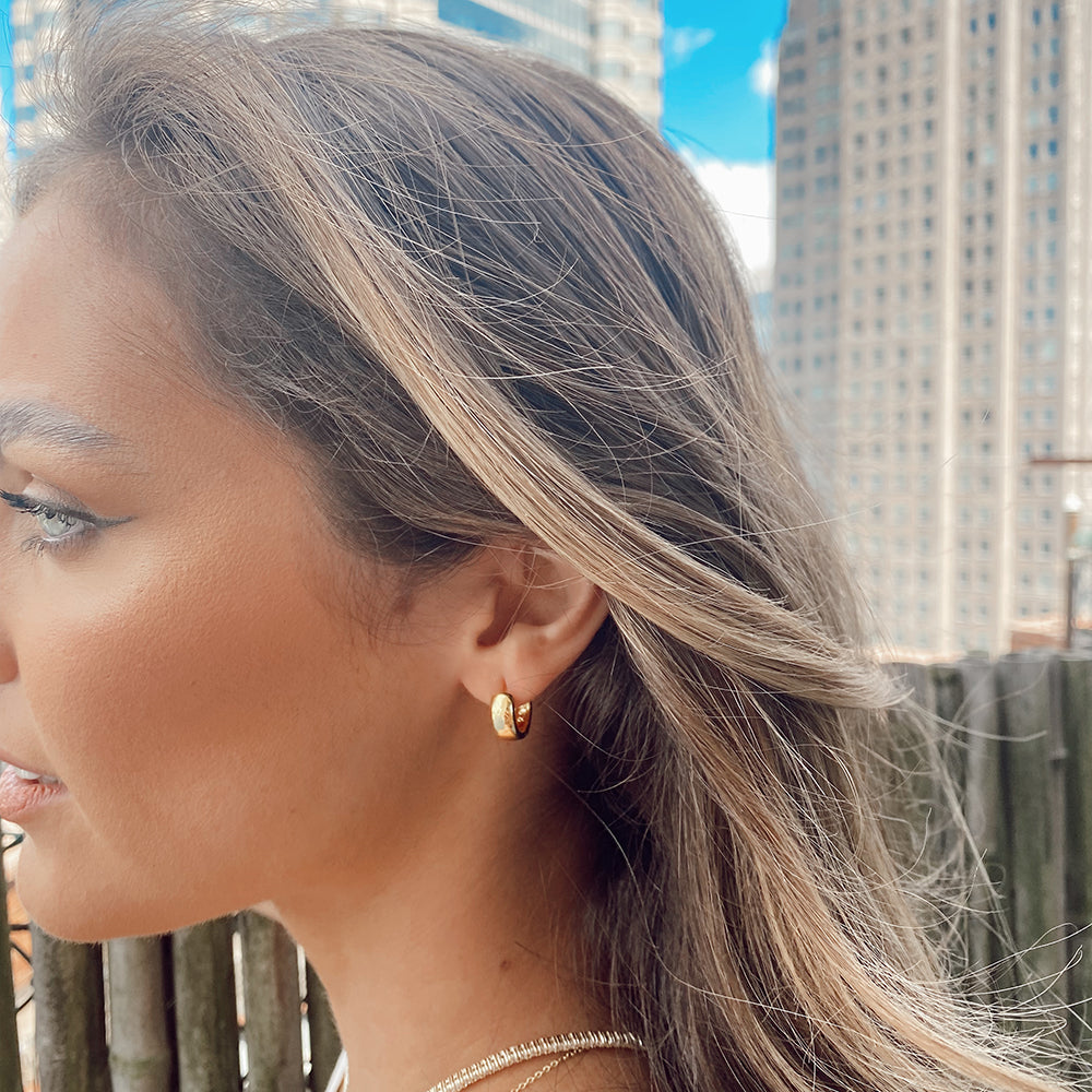 Go back to the basics in style with Em + Liv's 14K Gold Plated Huggies. Timeless and graceful in style and design, this gorgeous piece can be rocked as a solo statement piece or with a few chic hoops for a look that will turn heads anywhere you go.