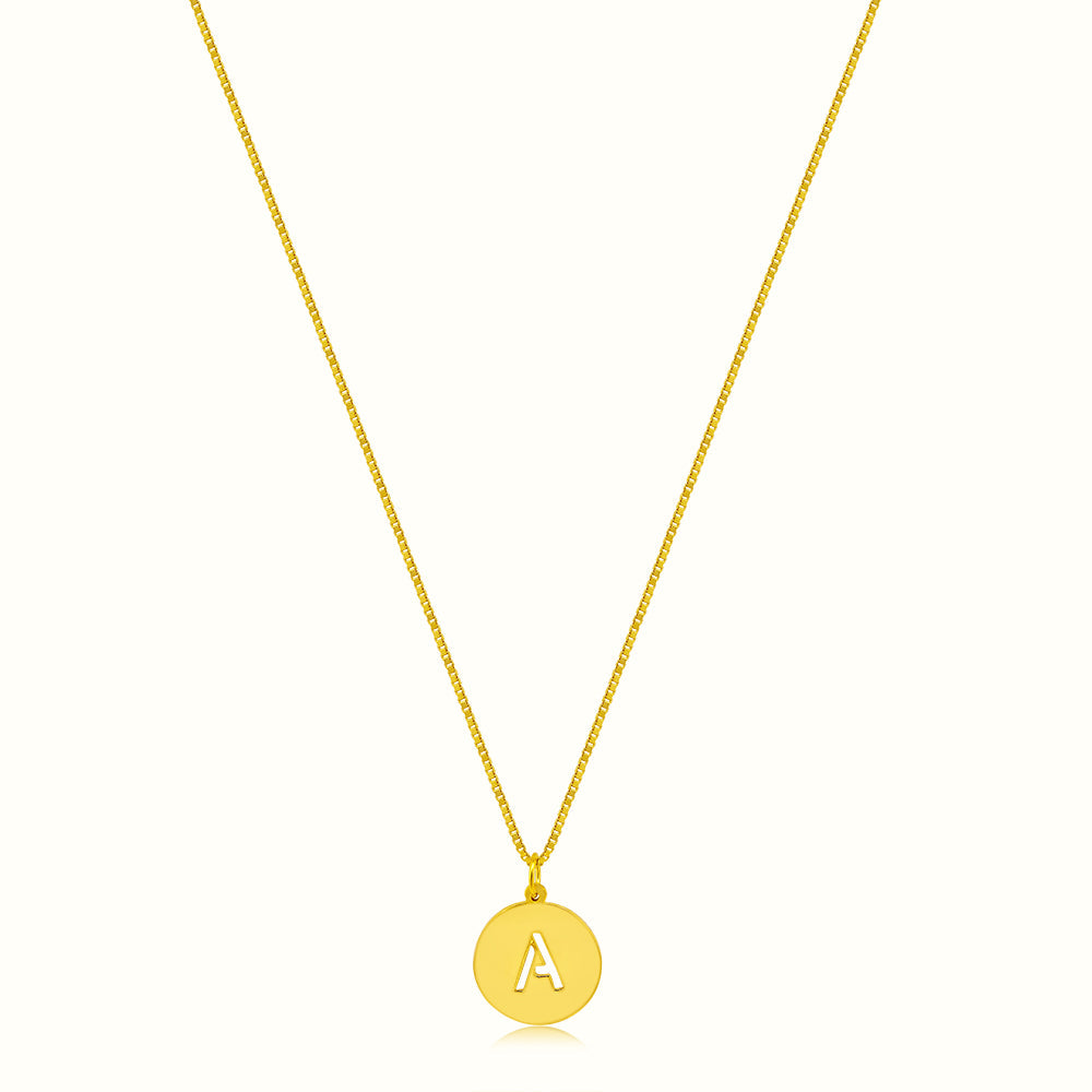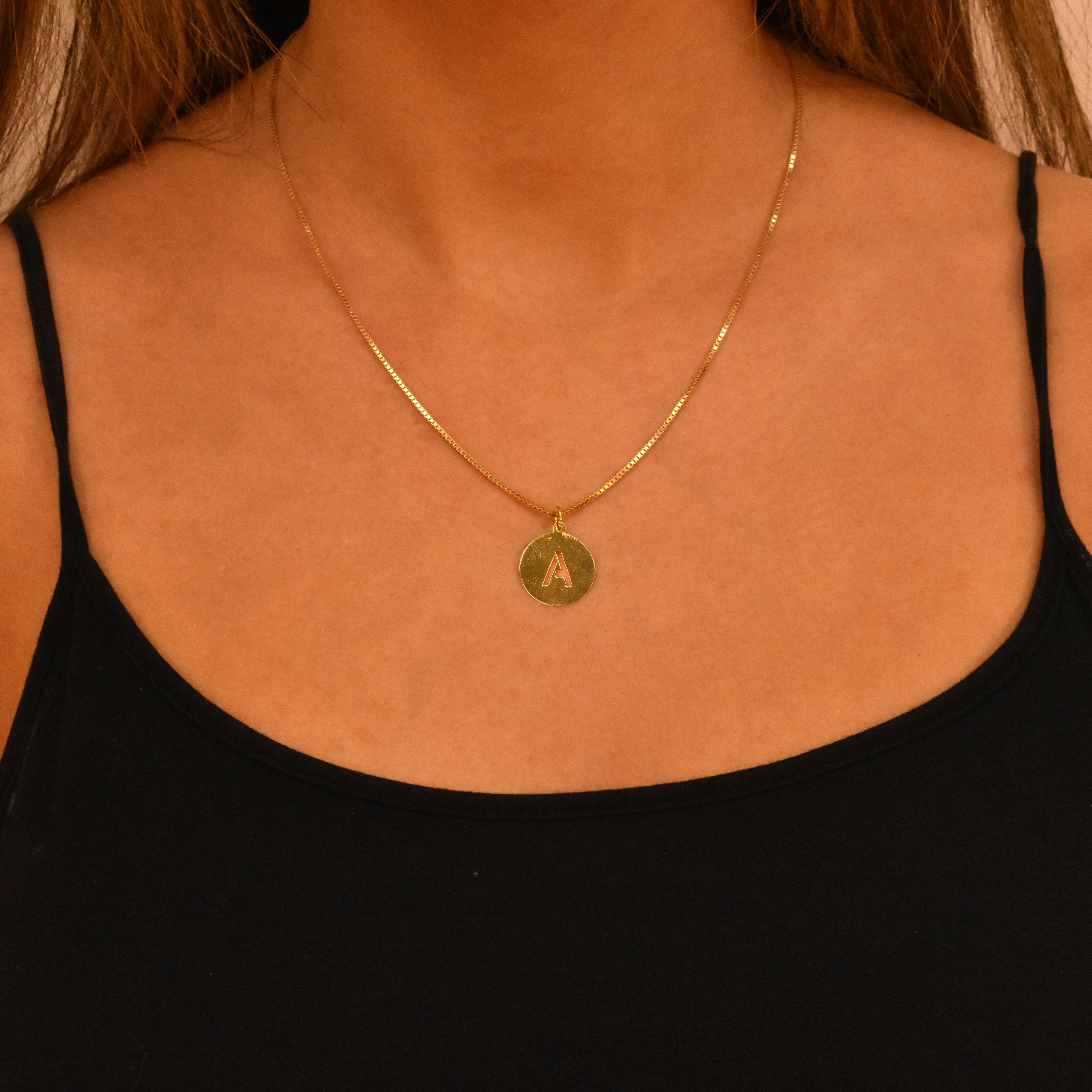 The Cutout Disk Initial Necklace is available in multiple types of metals. Be sure to choose your desired style!