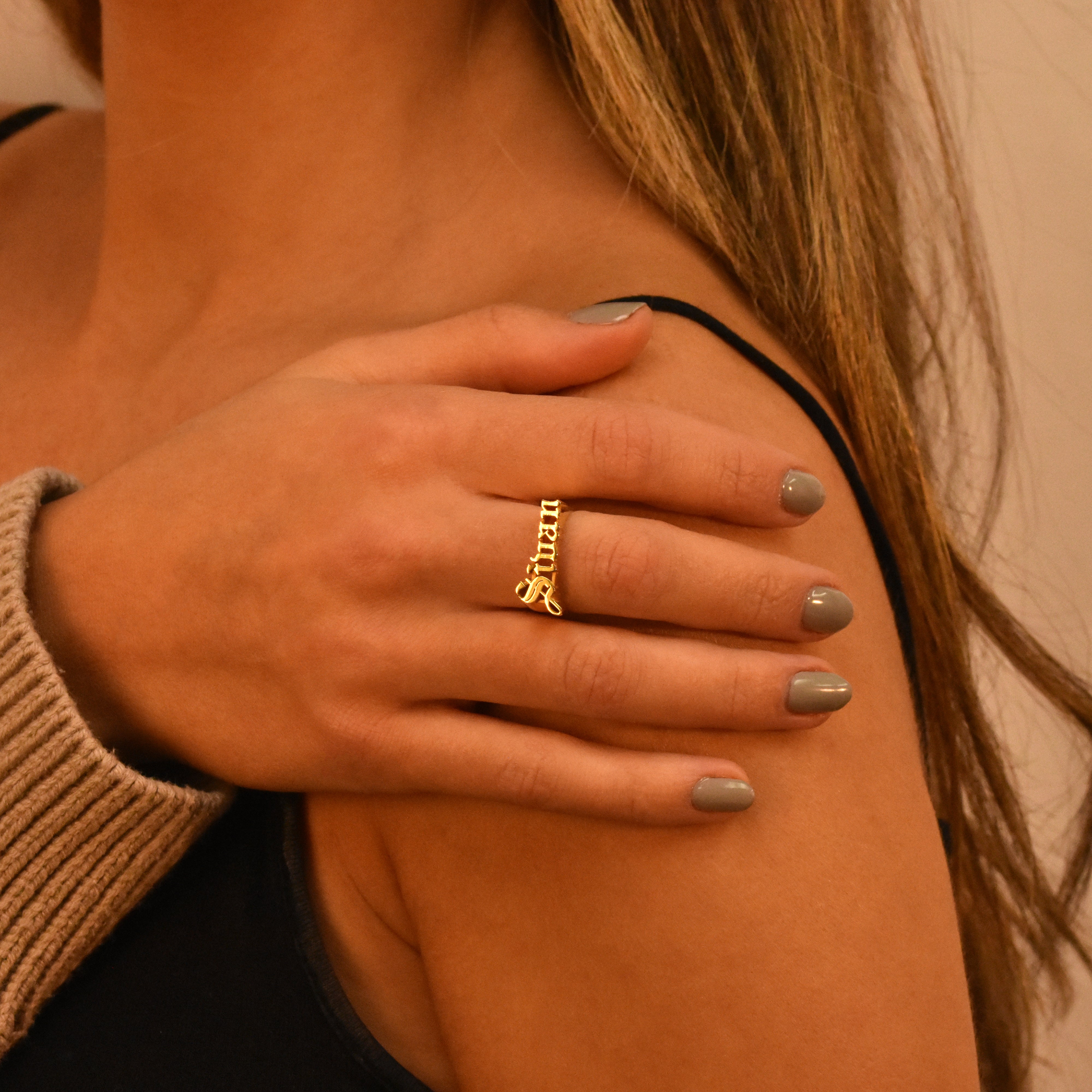 If you are looking for a way to customize your look, The Gothic Name Ring is the way to go! All you have to do is put your desired name in the custom field!