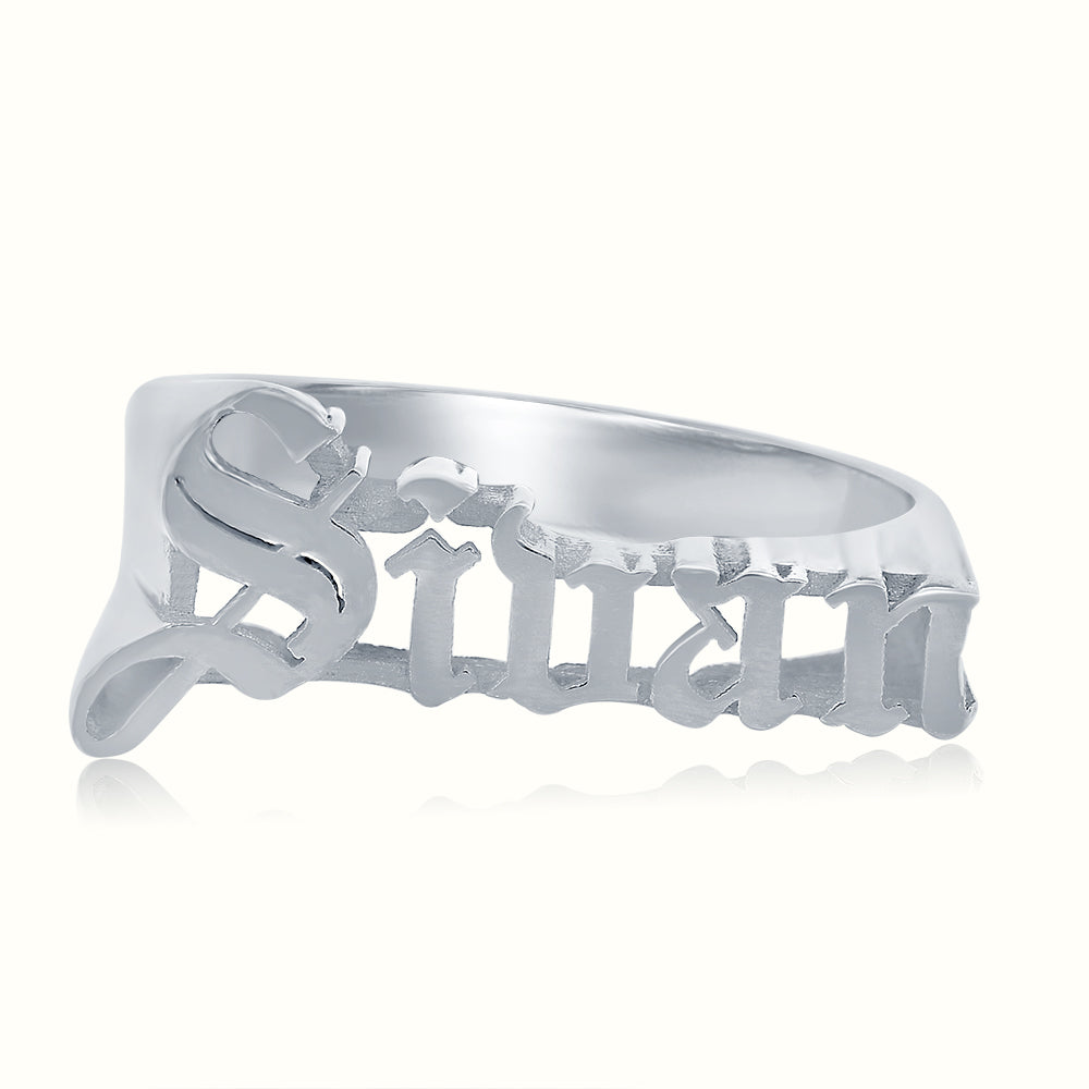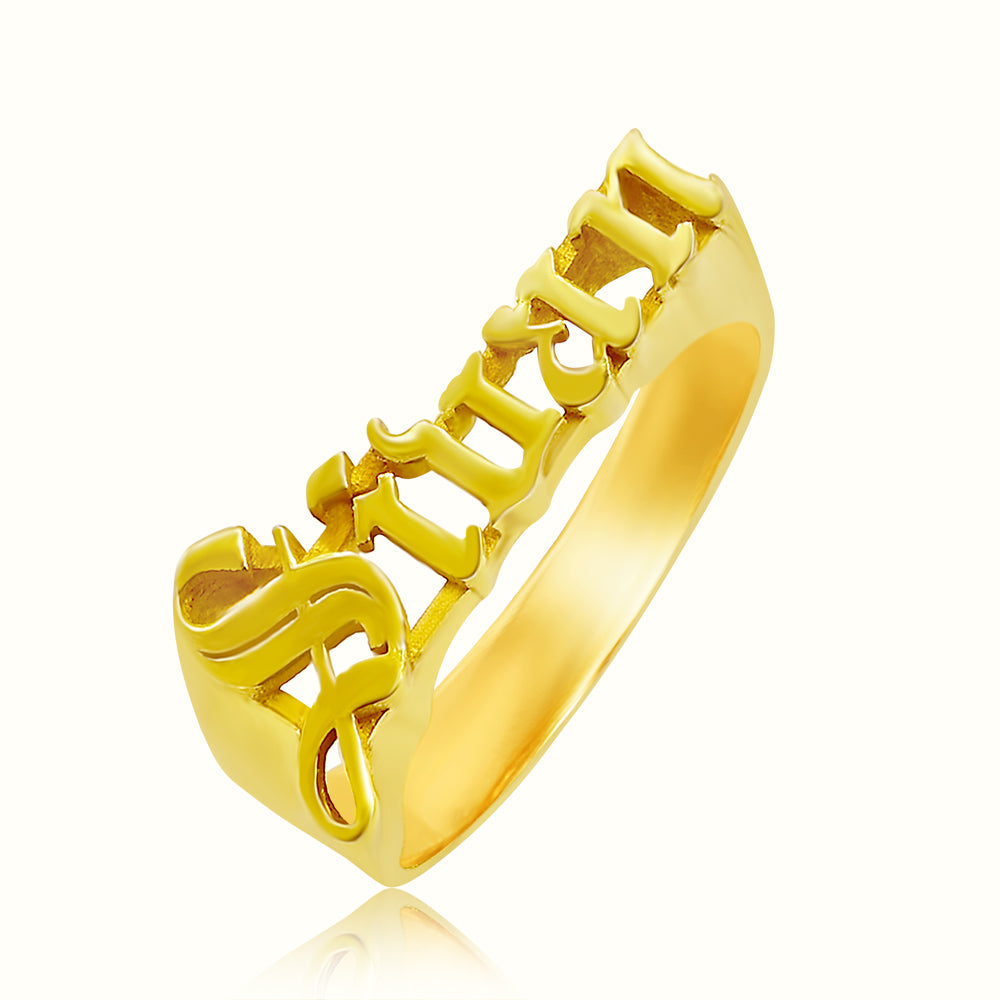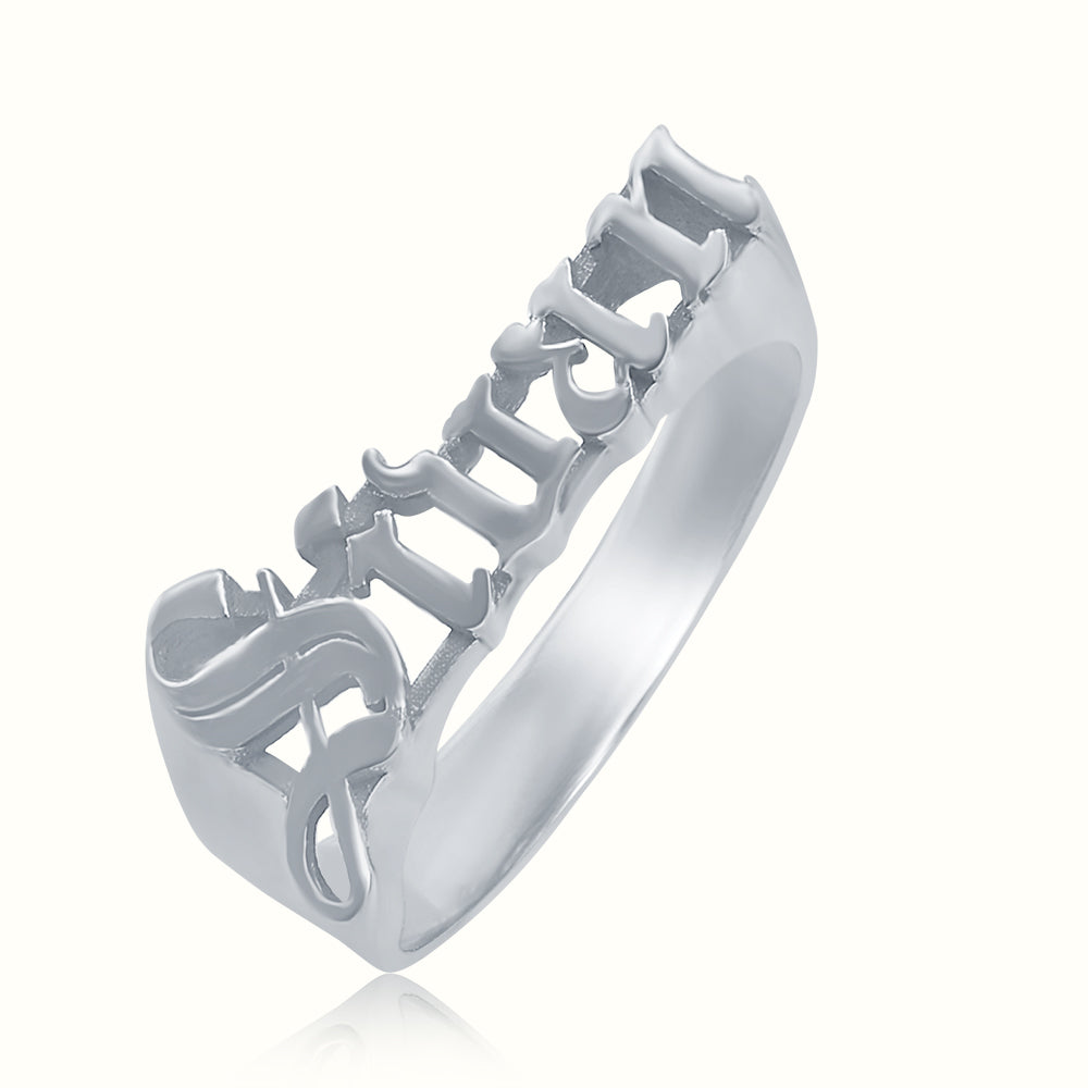 The Gothic Name Ring is available in multiple types of metals and sizes. Be sure to choose your desired style!