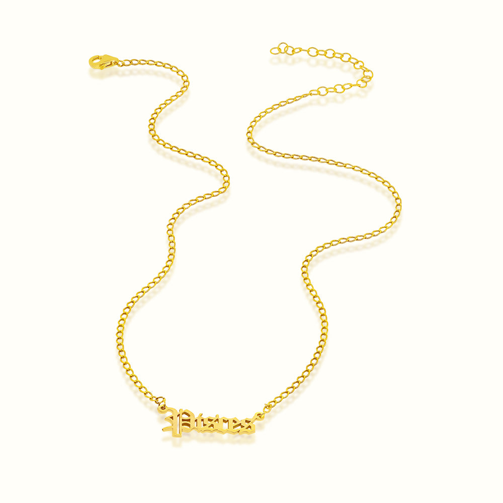 Redefine the zodiac with Em + Liv's Gothic Zodiac Necklace. This stunning necklace takes the zodiac symbol to a different level. Rock this simple yet sophisticated piece with any of your favorites to shine brighter than the stars for years to come.