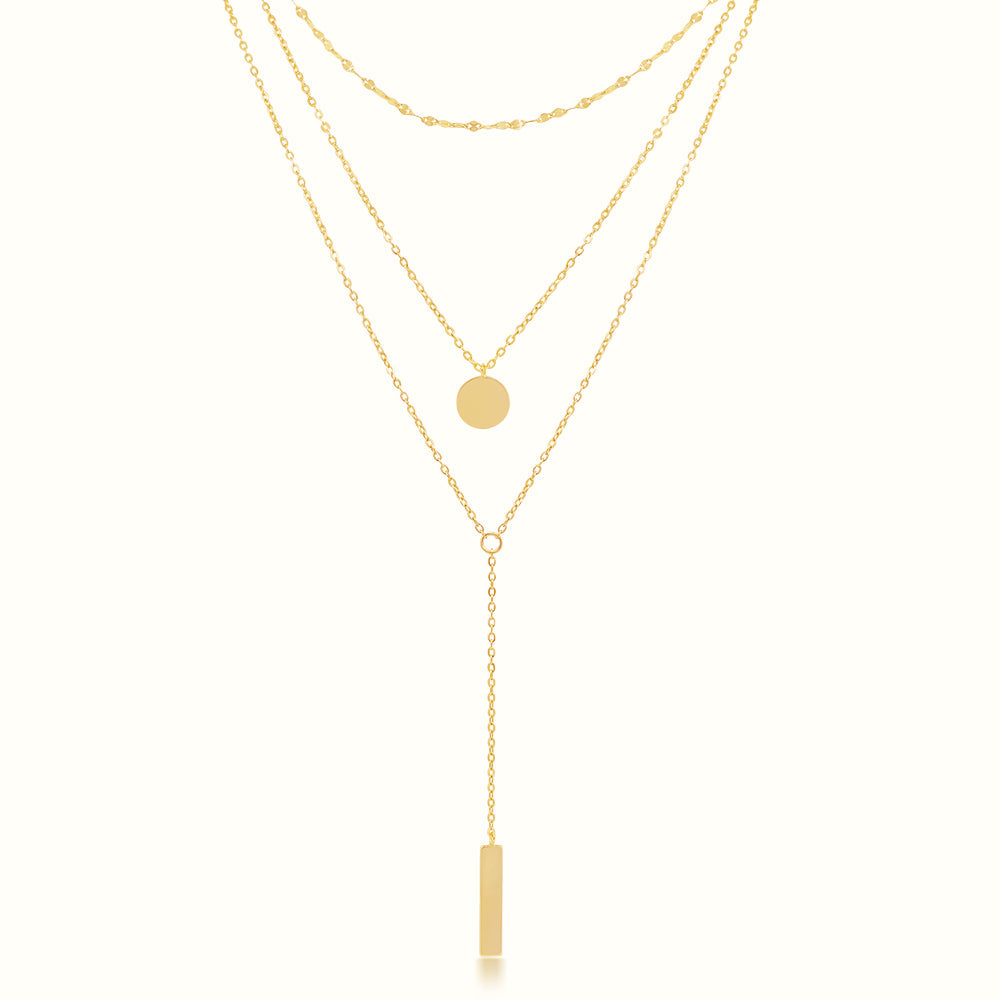 Create a sophisticated yet trendy look with Em + Liv's Three Layer Lariat Necklace. Make this stunning piece the start of a golden layered look that you can flaunt at work or out with friends.