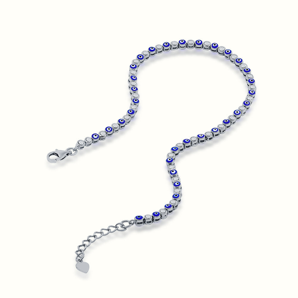 Catch the eye with Em + Liv's CZ Evil Eye Anklet. Wear this beauty to flaunt the perfect mix of classic designs and modern color. It's wondrous when you pair it with a couple of dainty chain anklets for a stunning, yet alluring look.