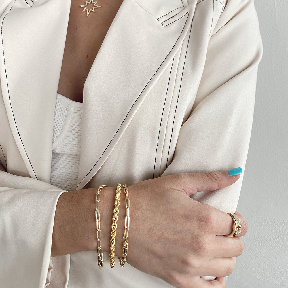 Chic, classy, and irresistible, this 14K Gold Plated Paperclip Bracelet is a must-have for your everyday look! You can stack this bracelet with any of your favorites to create your desired look.